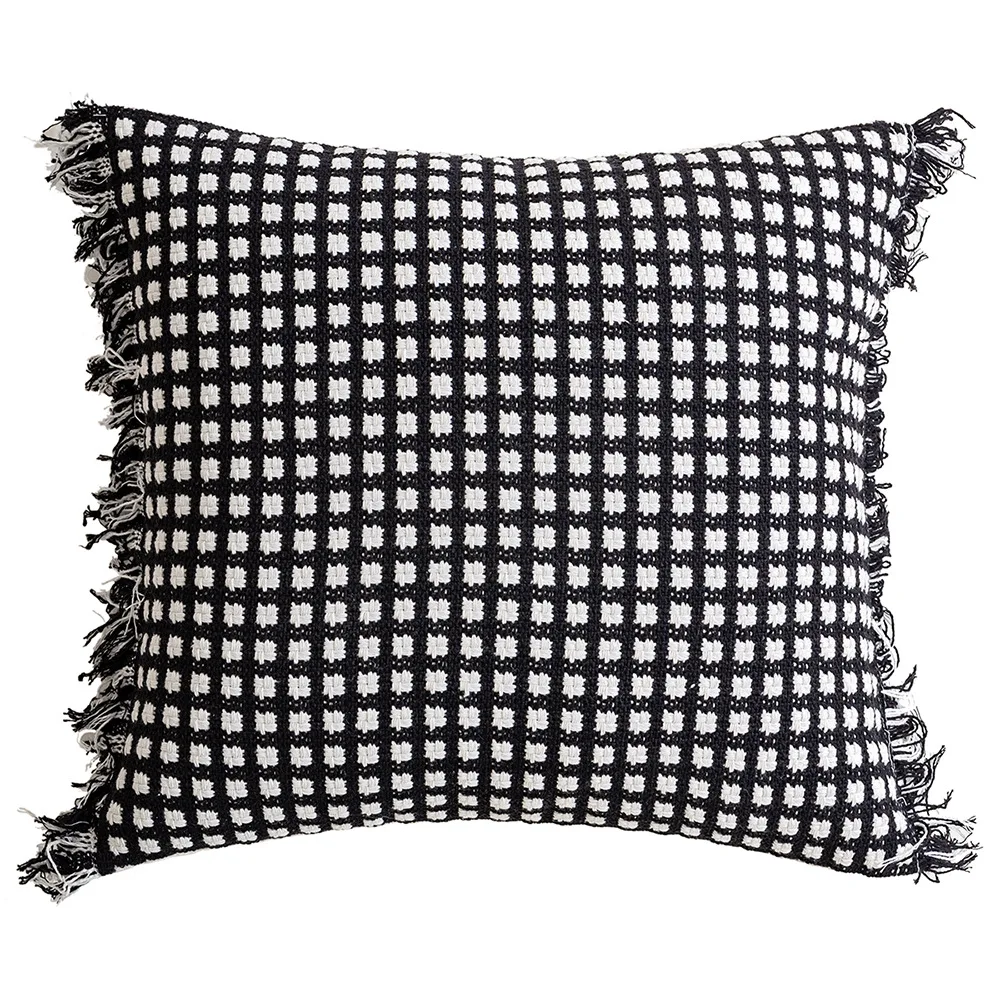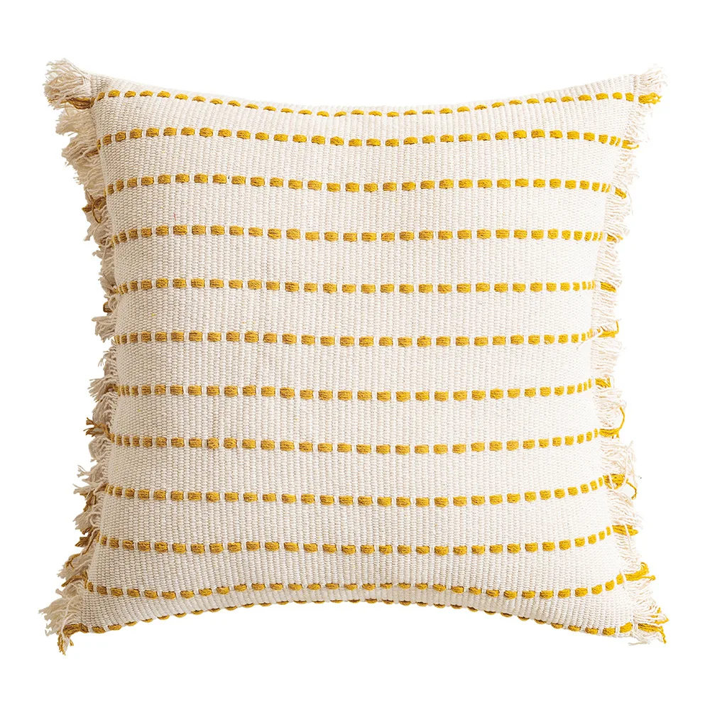 Esta Funda de cojín geométrica tejida con borlas rayadas de ganchillo no solo destaca por su diseño, sino también por su calidad indiscutible. Fabricada con materiales robustos, promete durabilidad sin perder su encanto visual, siendo una excelente inversión para los amantes del diseño duradero.