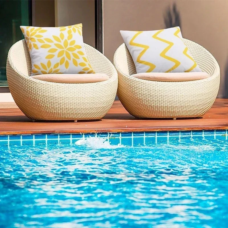 Fabricada con poliéster de alta calidad, esta funda de cojín está diseñada para resistir las inclemencias del tiempo, asegurando que tus cojines permanezcan secos y en perfecto estado tras las lluvias. Su resistencia al agua garantiza que el exterior de tu hogar siempre luzca impecable y acogedor, sin importar el clima.