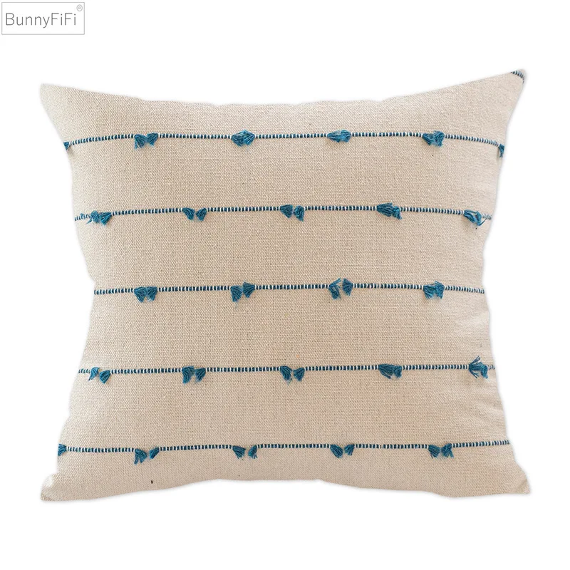 Elegancia que transforma con la Funda de cojín a rayas Jacquard algodón