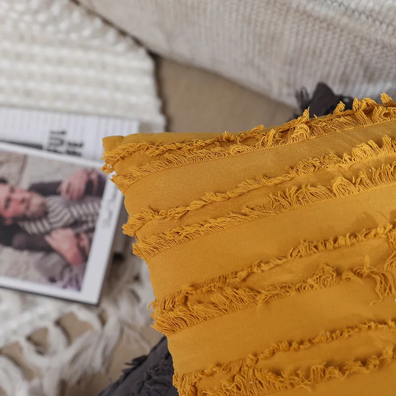 El tejido de algodón de la Funda de cojín algodón raya viento brinda una experiencia sensorial única. Su suave textura es ideal para crear un ambiente relajante y placentero. Esta funda no solo ofrece estética, sino también una comodidad excepcional que invita al descanso y la desconexión.