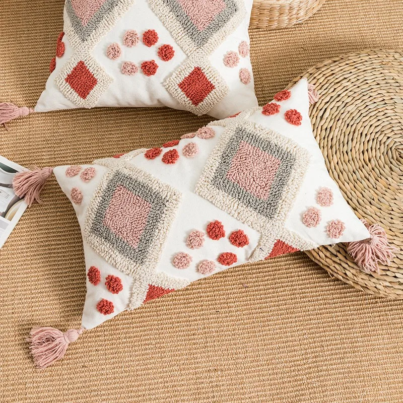 Confeccionada con lona de algodón de alta calidad, esta funda de almohada decorativa es perfecta para aquellos que buscan una decoración étnica y sofisticada. Las borlas y el bordado detallado resaltan su diseño, convirtiendo cualquier cojín en un verdadero protagonista de su ambientación.
