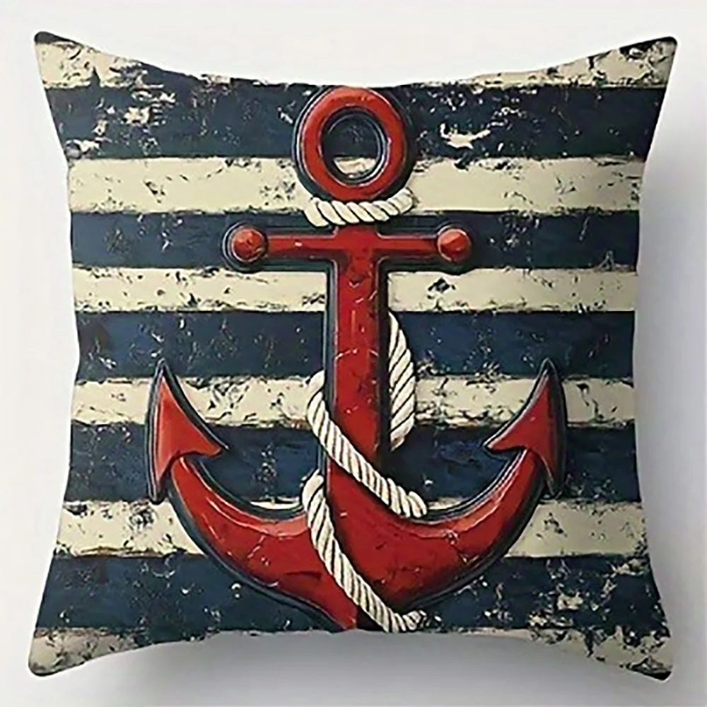 Durabilidad y confort en la funda de cojín con ancla roja en fondo a rayas