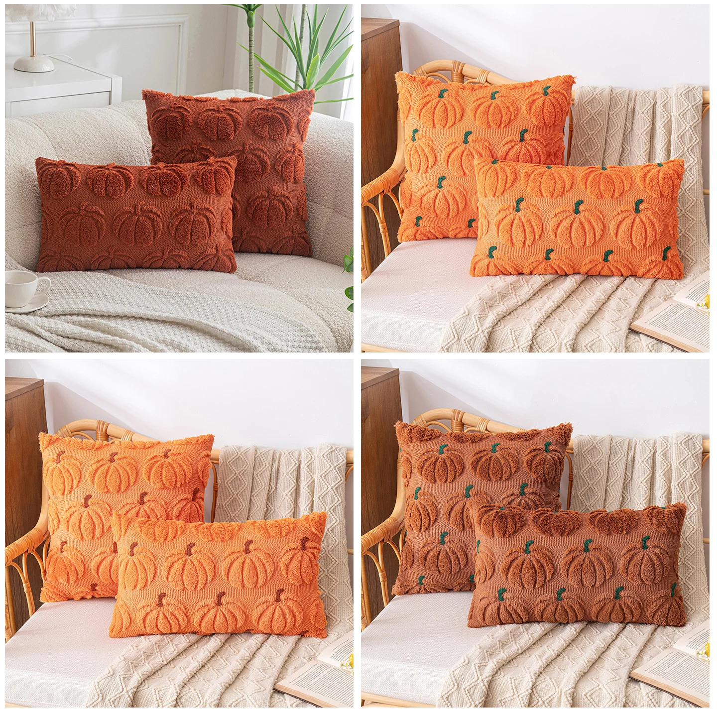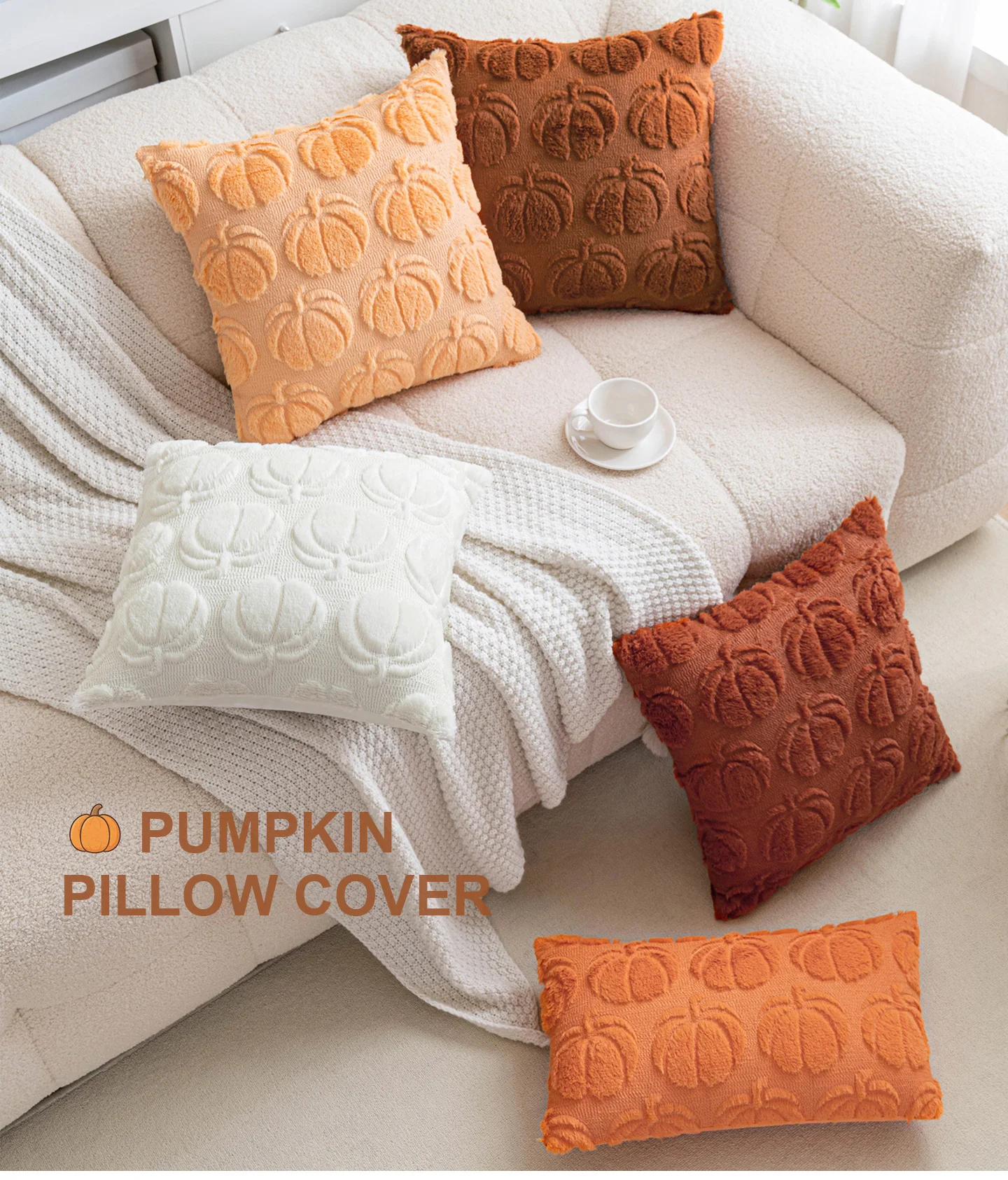 Añade calidez con la funda de cojín de calabaza, cojín de piel sintética suave para sofá, Halloween