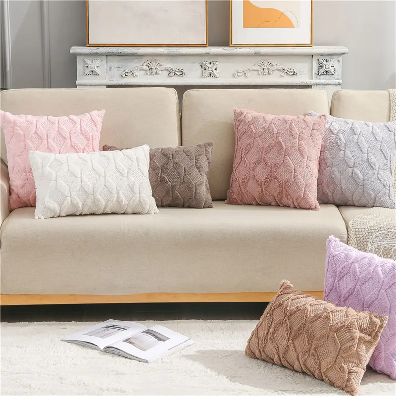 Confort y sofisticación de la Funda de cojín de felpa con rombos 3D