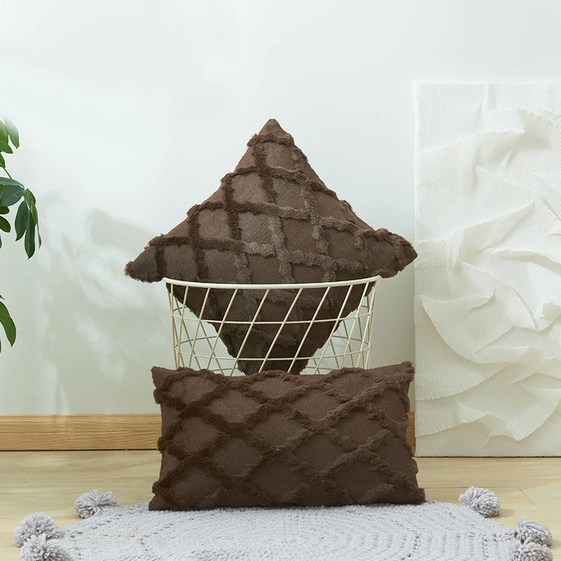El patrón de rombos en relieve de la Funda de cojín de felpa con rombos 3D aporta una dimensión dinámica al entorno, creando interesantes efectos visuales de luz y sombra. Este diseño no solo es un plato fuerte visual, sino que también invita a juguetear con la decoración de manera creativa.