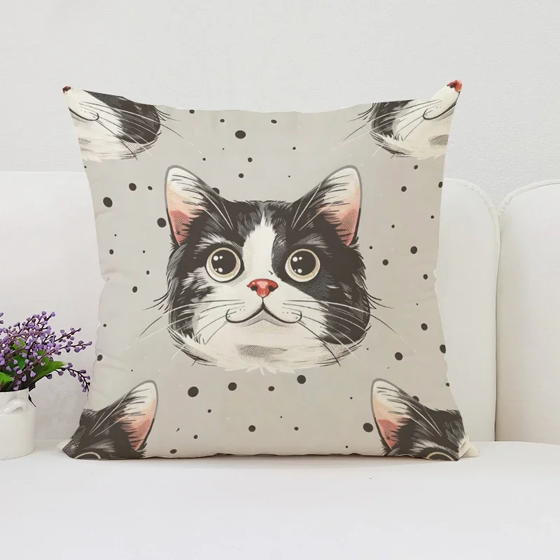 La funda de cojín de gato de dibujos animados es ideal para quienes buscan agregar un toque único y divertido a la decoración de su hogar. Es perfecta para transformar cualquier ambiente común en un espacio lleno de personalidad, haciendo que cada rincón de tu casa se sienta más acogedor y personal.