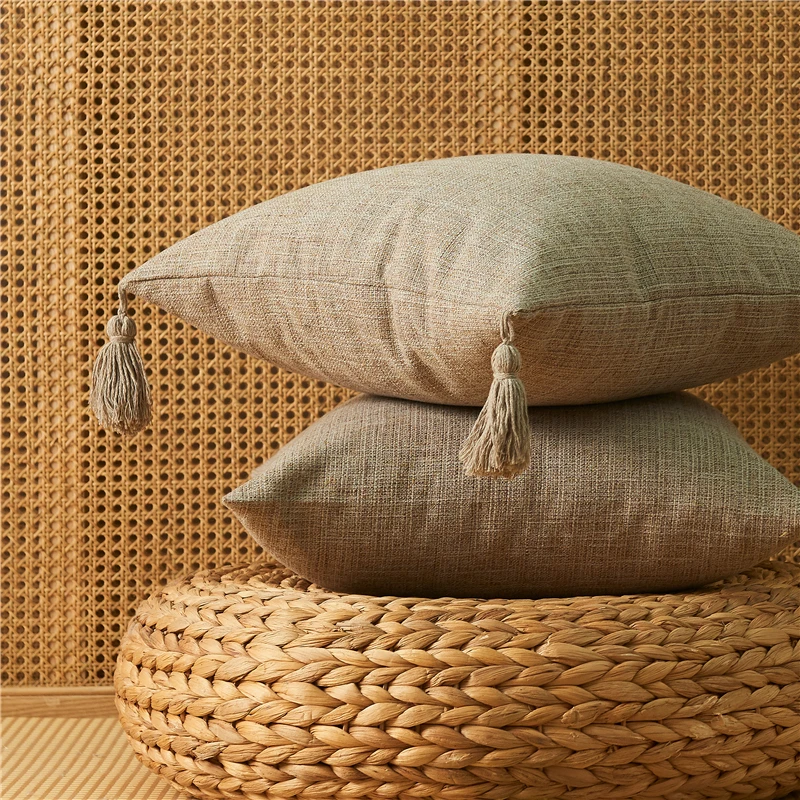 Con la funda de cojín de lino, la personalización de tu entorno es más sencilla. Este artículo es personalizable y te permite elegir entre diferentes tonos, asegurando que cada funda resuene con el estilo único de tu hogar. Enriquece cualquier espacio con un complemento que nunca pasa de moda.
