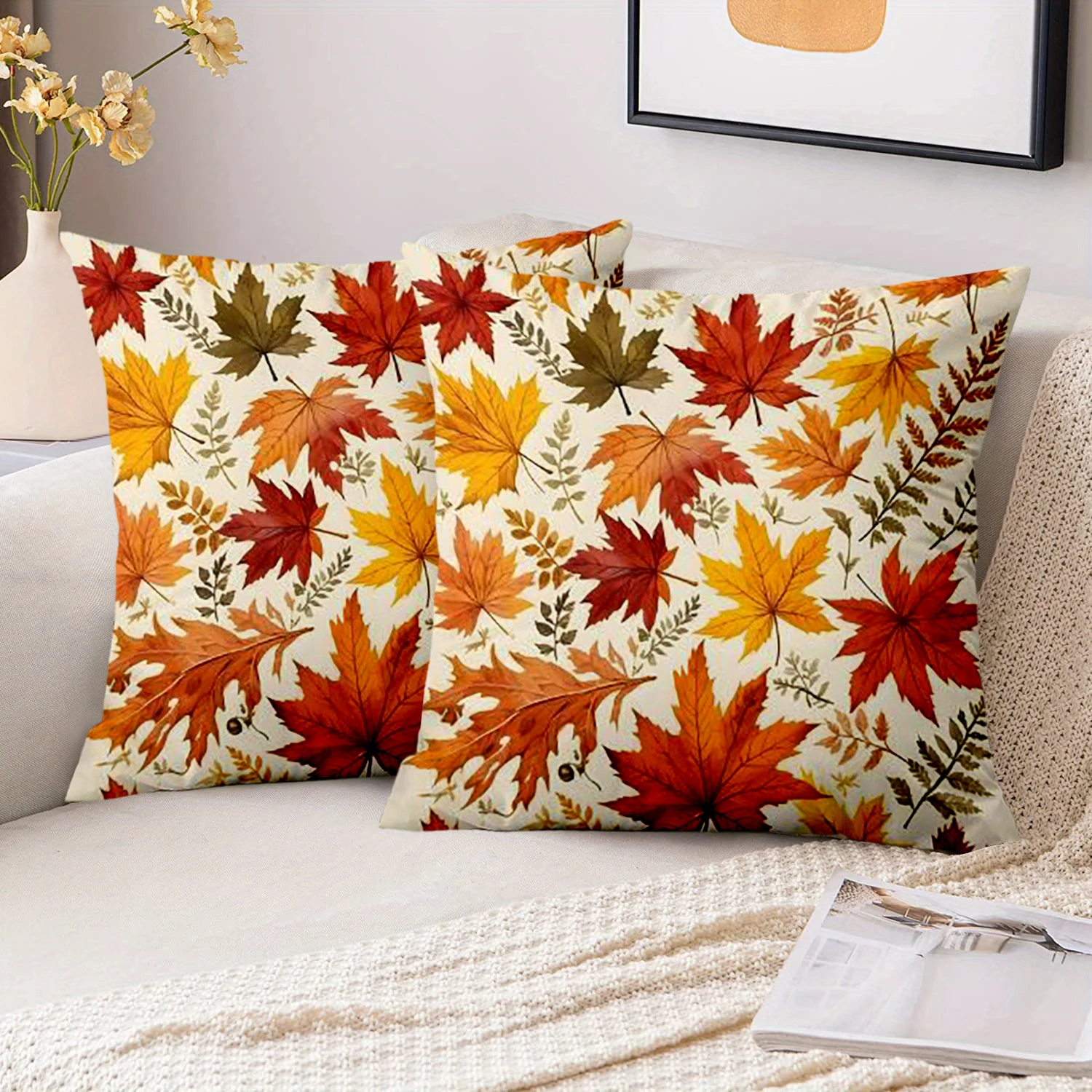 Transforma tu hogar con la Funda de cojín decorativos con estampado de hojas de otoño