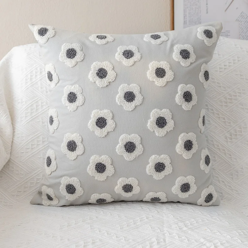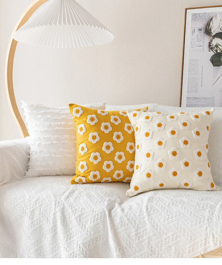 Descubre la versatilidad de la Funda de cojín Floral Margarita bordada elegante