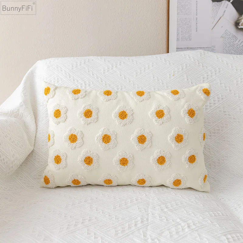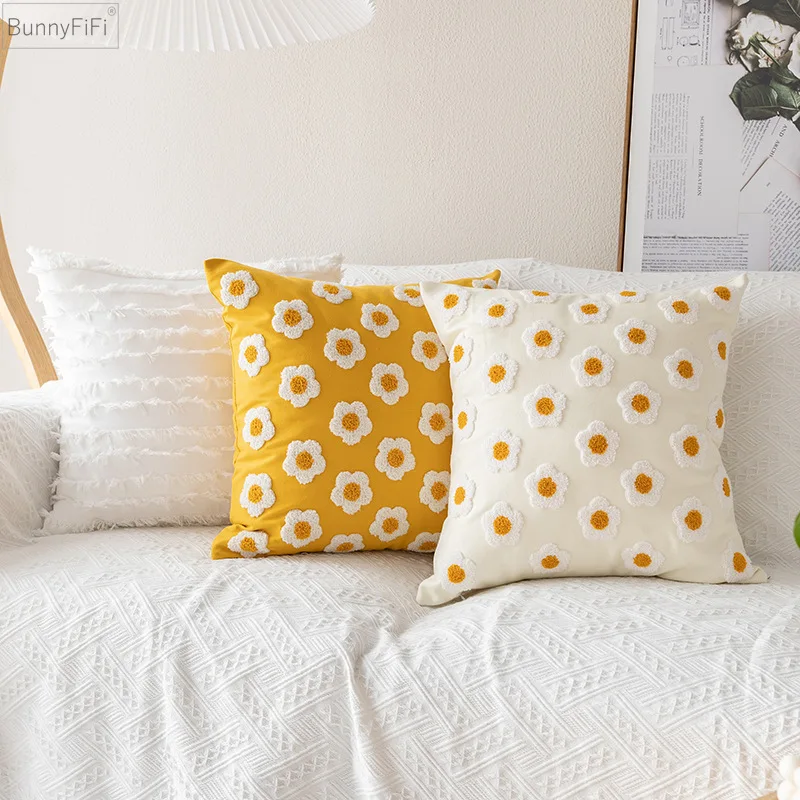 Transforma tu hogar con la Funda de cojín Floral Margarita bordada elegante
