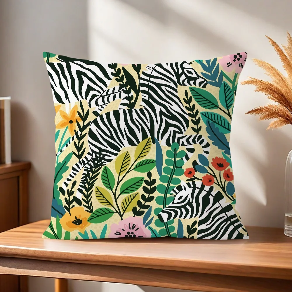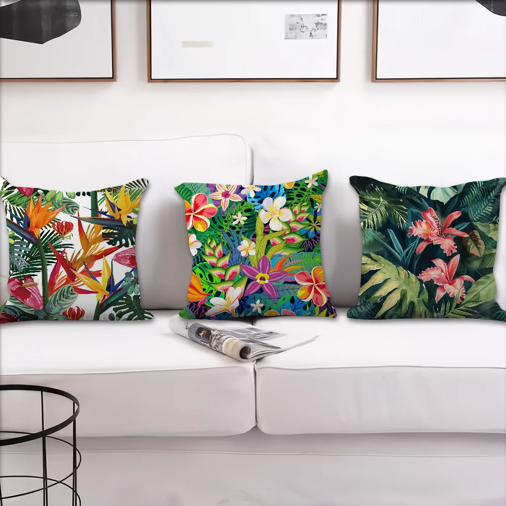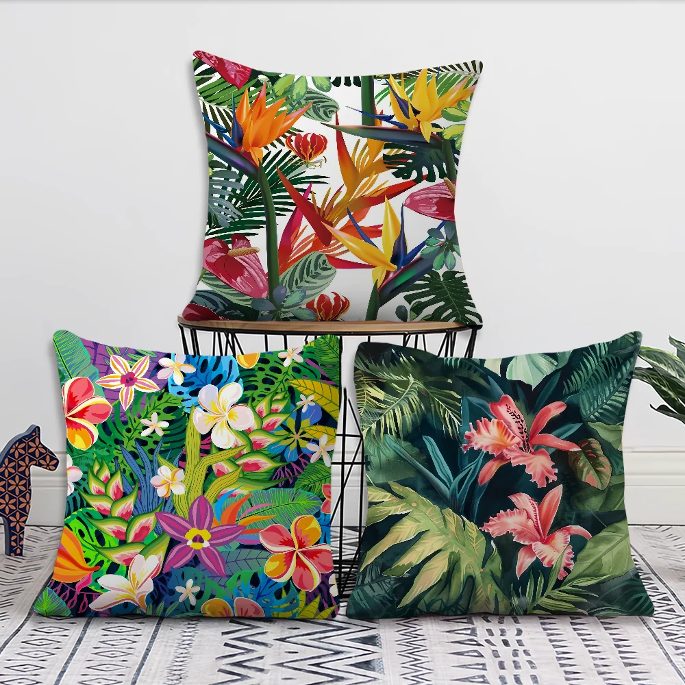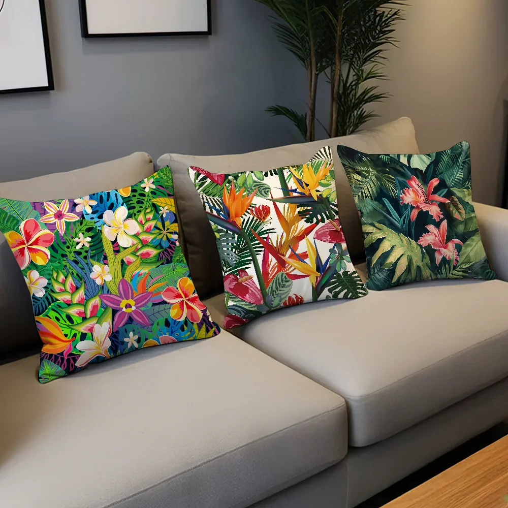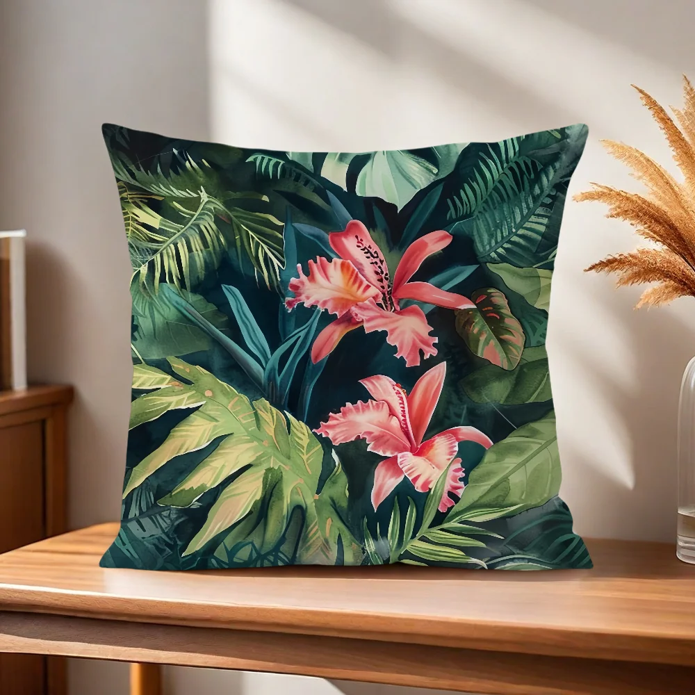 Embellece tu hogar con la Funda de cojín Flores de jungla Tropicalbsuave y cómoda