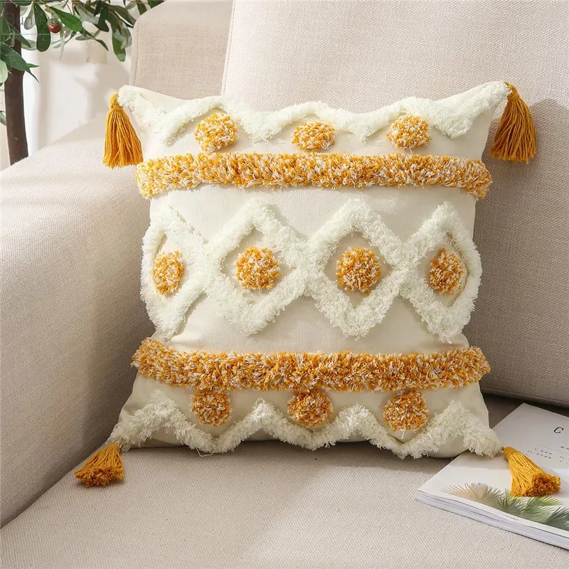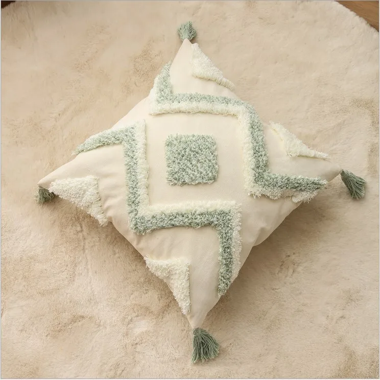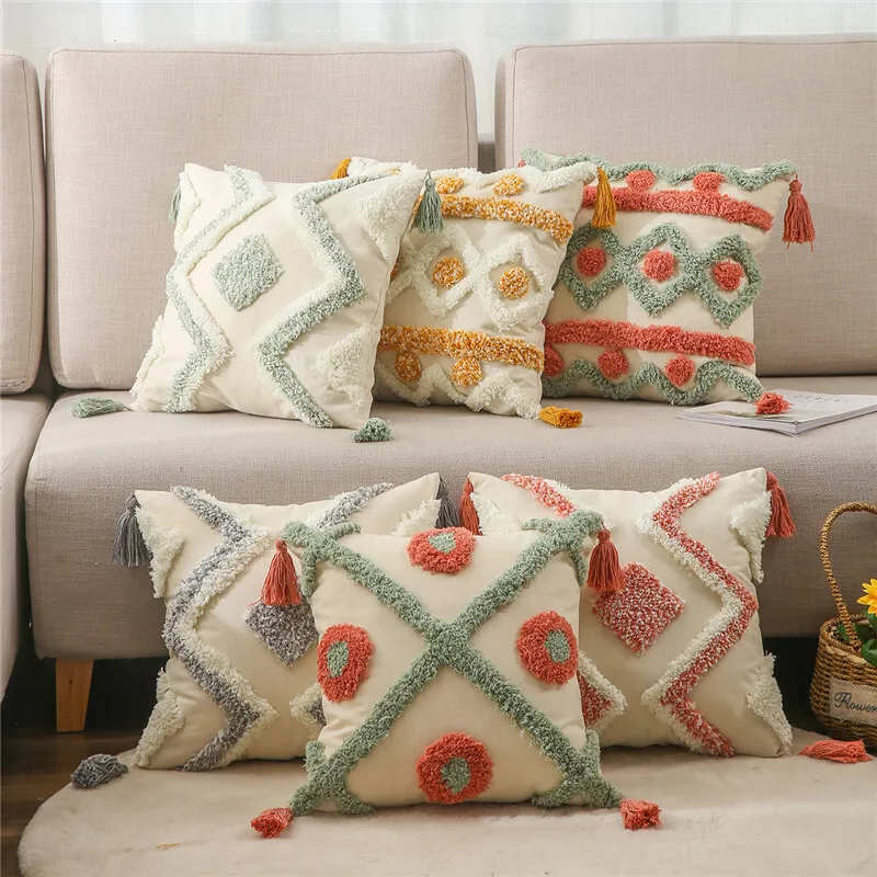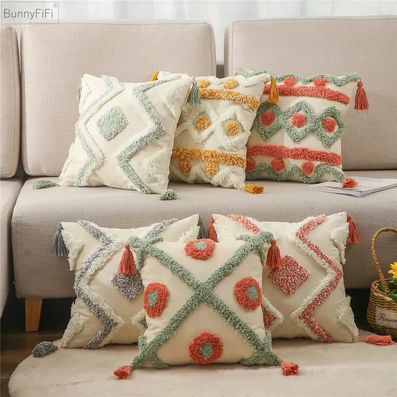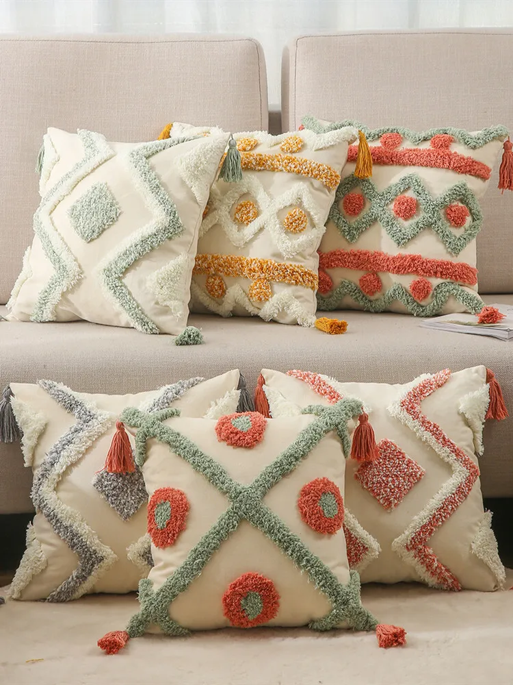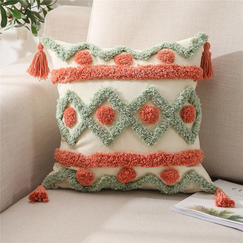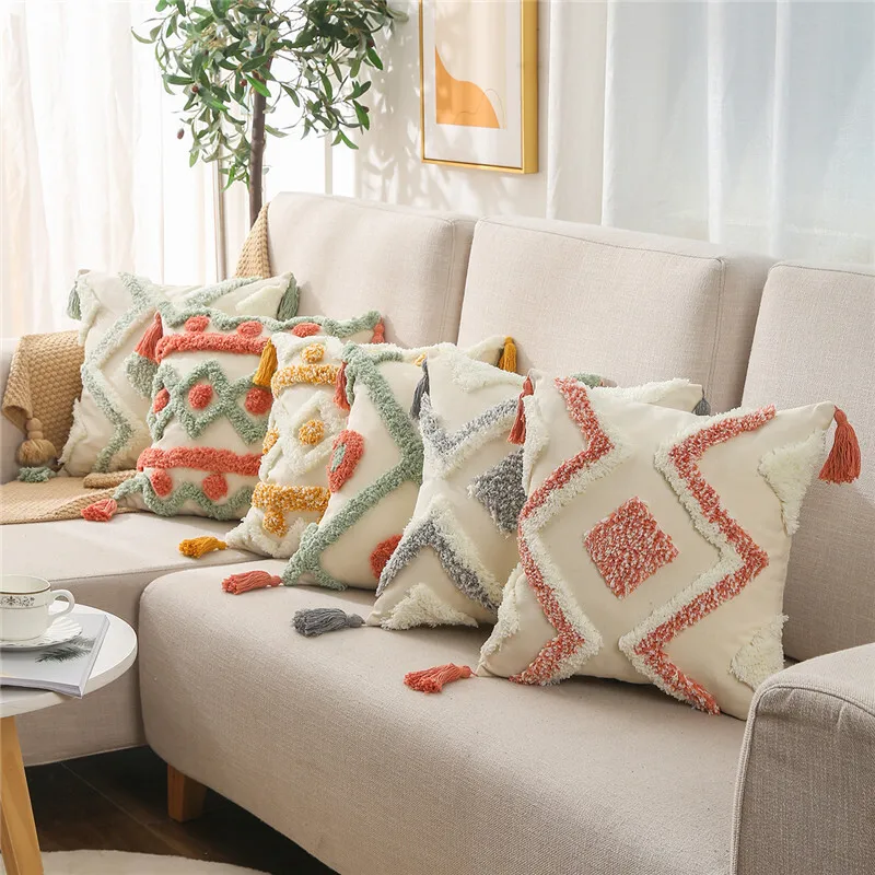Integrar esta funda de cojín en tu hogar es sinónimo de comodidad y diseño. La textura y el detalle del bordado añaden profundidad visual, mientras que su patrón geométrico se adapta fácilmente a diferentes estilos decorativos, desde nórdicos hasta minimalistas.
