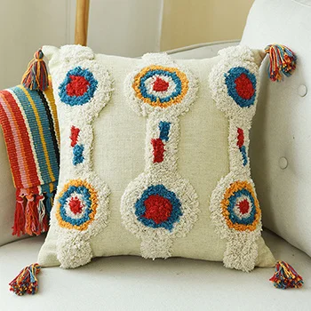 Funda de cojín hecha a mano de estilo marroquí étnico de lujo con borlas de lana