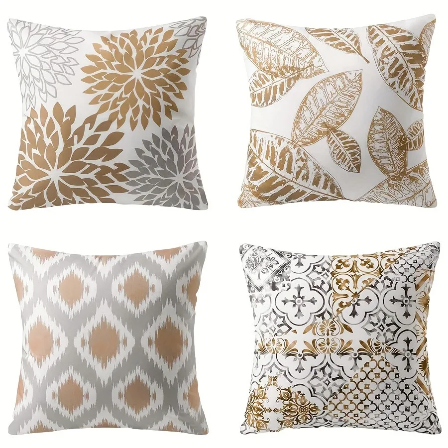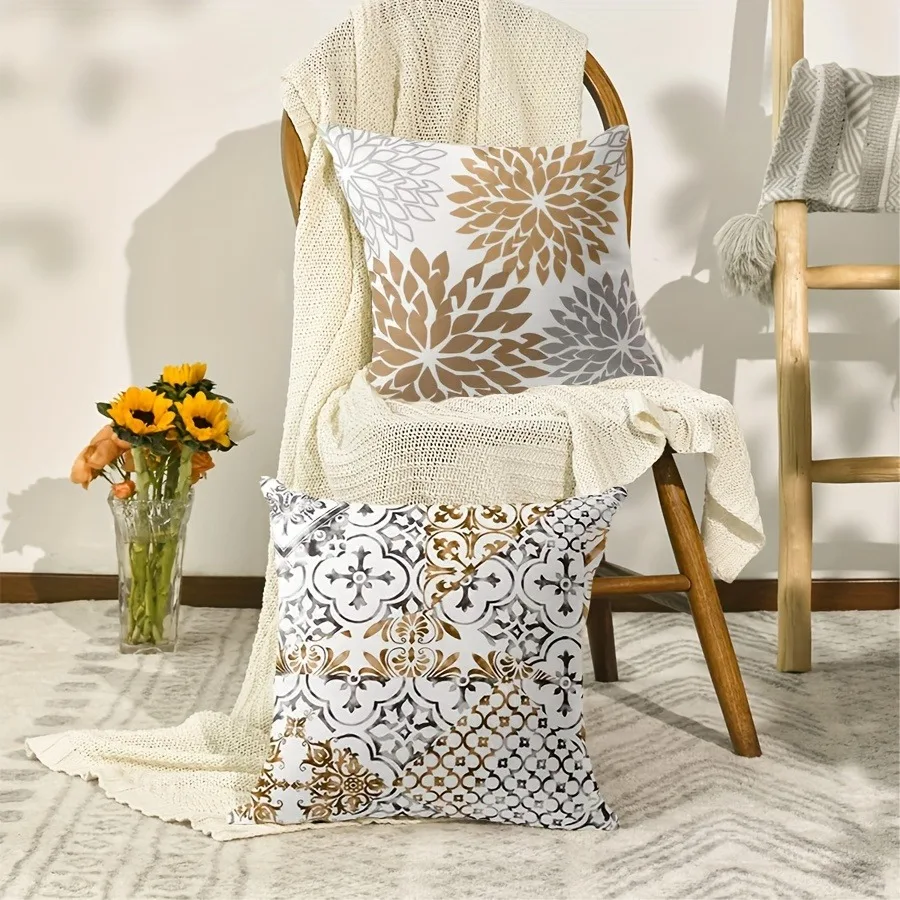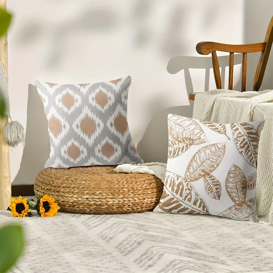Descubre la comodidad y estilo de la Funda de cojín Patrón marrón dorado, decoración entrelazada con estilo lujoso