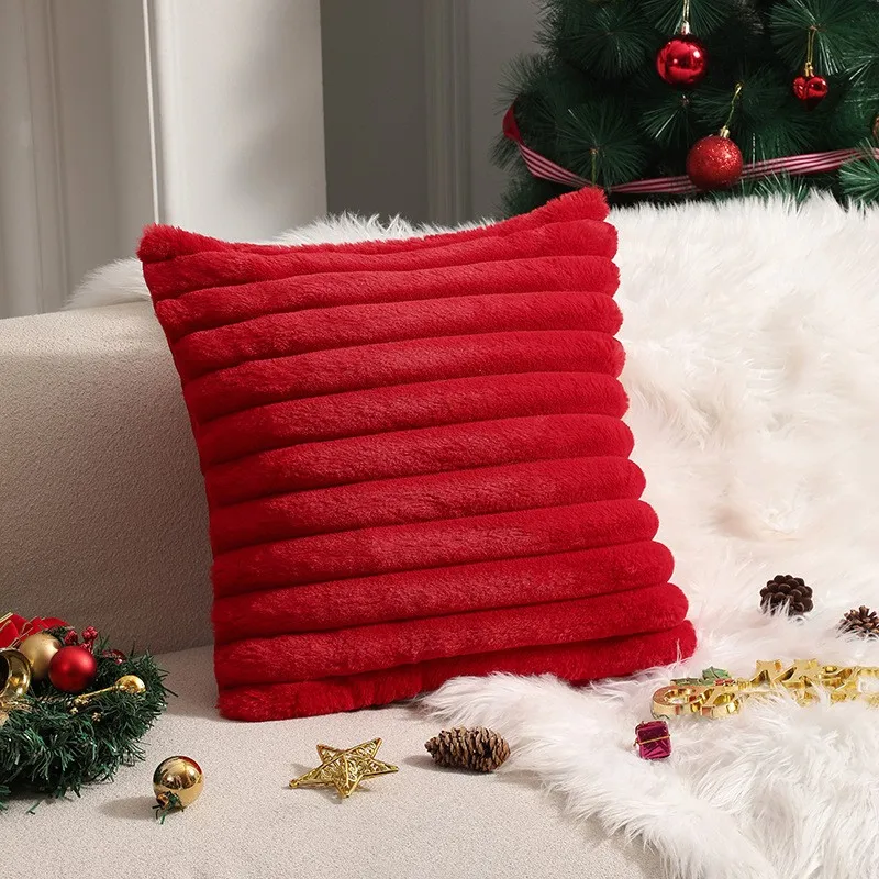 Transforma tu espacio con la Funda de cojín suave de felpa de piel de conejo a rayas